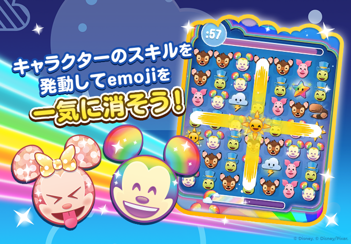 「ディズニー emojiマッチ」は『アナと雪の女王』や『アラジン』などのディズニーキャラクターに加え、『トイ・ストーリー』『モンスターズ・インク』などのピクサー作品、『スター・ウォーズ』シリーズのキャラで遊ぶ3マッチパズルです!